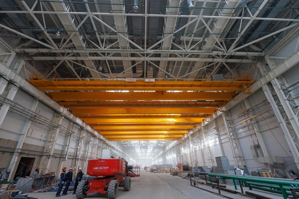 В корпусе для проведения пусконаладки электропоездов ведутся устройство системы пожаротушения, укладка железнодорожных путей, внутренние отделочные работы, монтируются слаботочные и электрические сети.